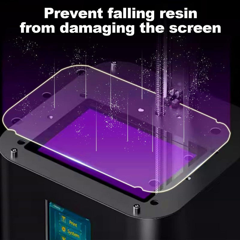 - Screen Protector Function: This screen film can prevent resin leakage to damage from the screen and protect the screen from being scratched. Replacing the 3D printer screen is expensive cost, so screen film can prolong the life of screen and can save the cost of maintenance and replacing screen.