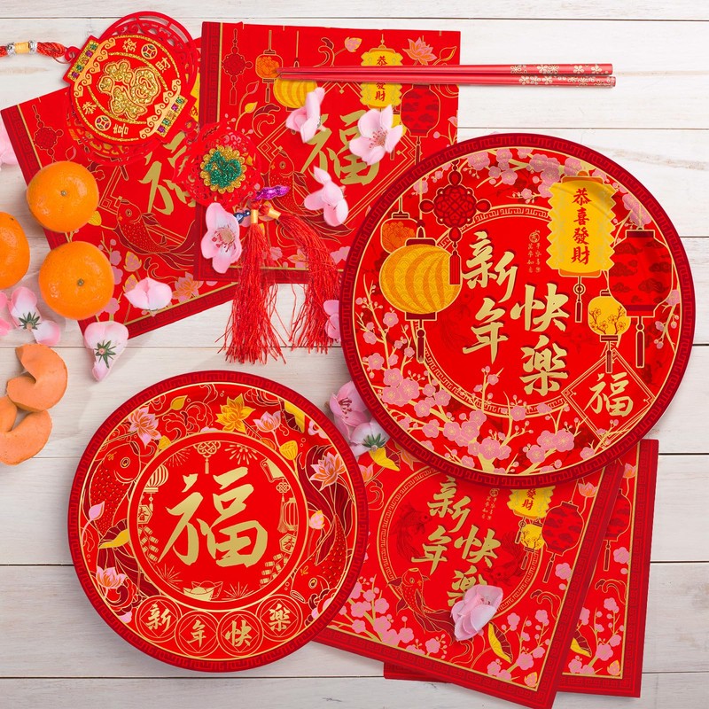 - Comprehensive Chinese New Year Party Set: Ensure your celebration is fully equipped with our Chinese New Year Party Supplies kit, including 50pcs of 9" lunch plates, 50pcs of 7" paper plates, 50pcs of 6.5" square paper napkins. Each item is thoughtfully designed to enhance your Lunar New Year festivities, making them indispensable Chinese New Year party decorations.