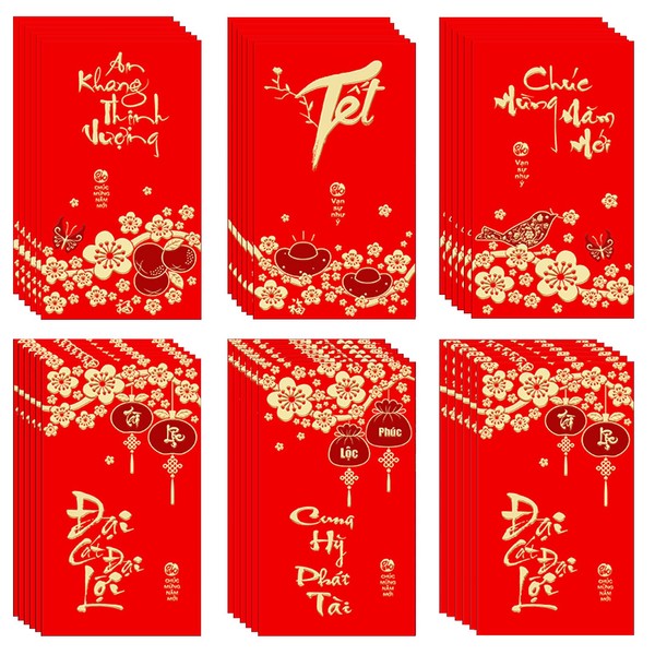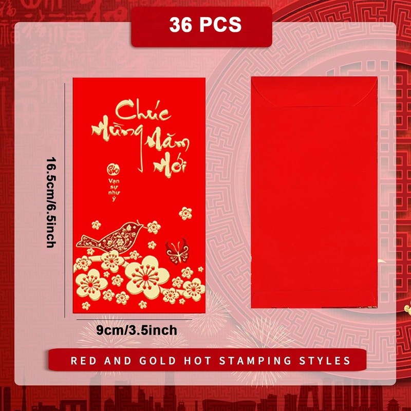 • 【Packaging Content】36pcs Chinese red paper envelopes,6 different patterns, 6.6 inch length 3.5 inch width.