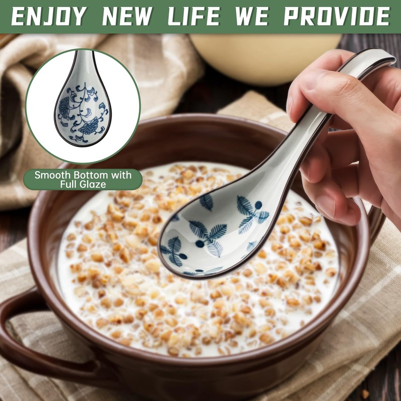 - [GOOD WORKMANSHIP] These Chinese soup spoons are made of high-quality ceramic. Perfect finish looks great arranged on a tray. They are comfortable for using and have a handy little hole to hang on small hook