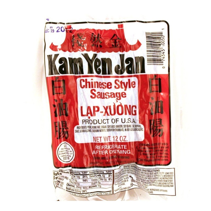 Kam Yen Jan Chinese Style Sausage in 12oz pack. Product of USA.