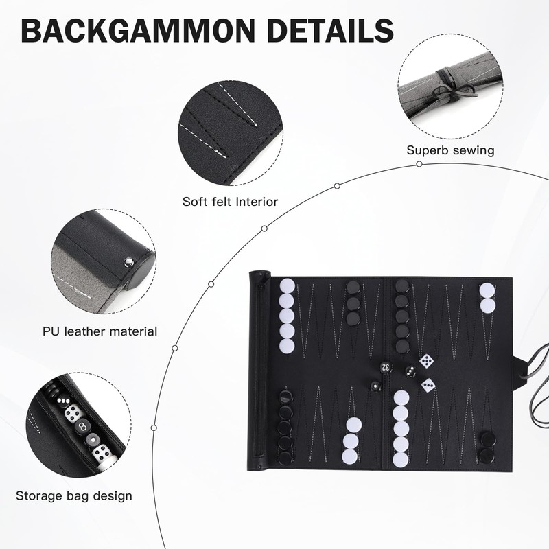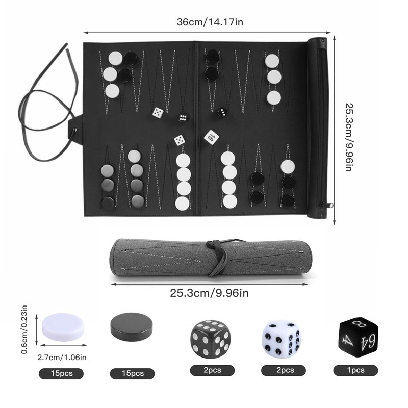 The roll-up design of this backgammon board game makes it easy to carry and store. Bring it to your travels, picnic, beach or wherever.