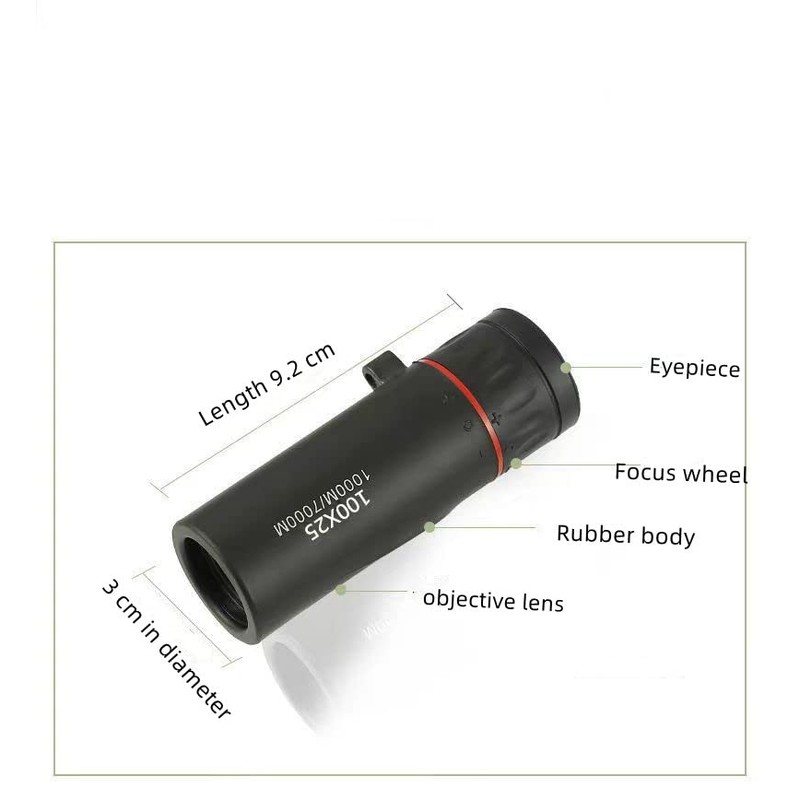 - High-definition magnification: 2000x magnification and 24mm objective lens diameter monocular, field of view range 8000M-80000M, high contrast and resolution will provide you with clear, bright images and crystal-clear vision, a travel artifact! It can see about 10,000 meters away, high power and super far, very suitable for hiking, hunting, mountain climbing, bird watching, ball games, concerts, travel, and viewing the scenery.<br>