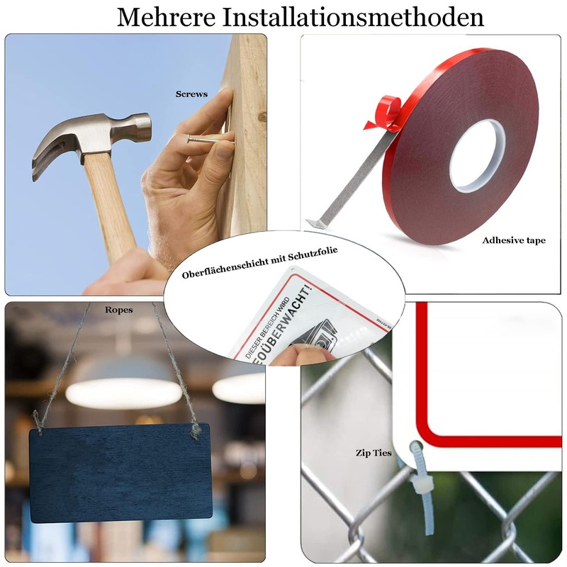 - ? Metallmaterial & Wetterresistent - Unsere Schilder bestehen aus Metallaluminium, das nicht rostet und 100 % wasserdicht ist. Die Oberfl?che ist mit UV-best?ndiger Tinte bedruckt, um jedem Wetter standzuhalten und ein Ausbleichen zu verhindern.