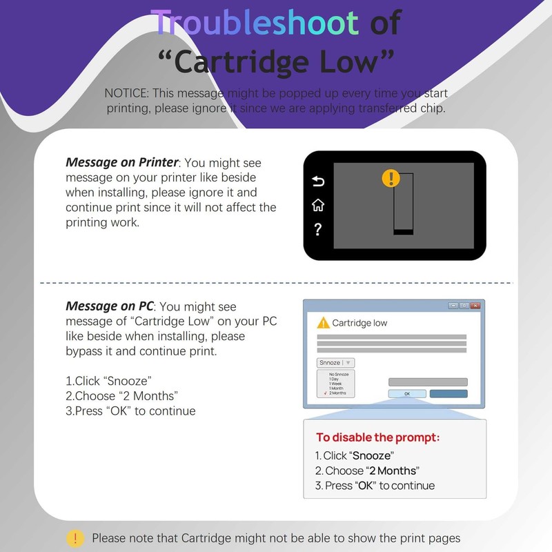- NOTICE: Printer may show error messages to discourage users from using 3rd party toner, just please press "OK" button or ignore it to continue printing