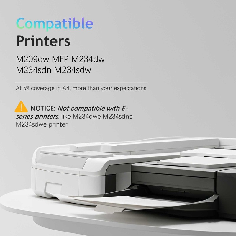 - NOTICE: Not compatible with E-series printers, like M234dwe M234sdne M234sdwe printer/ Message of Cartridge Low might be popped up every time you start printing, please ignore it since we are applying transferred chip/ Cartridge might not be able to show the print pages