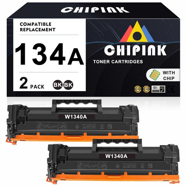 Chipink Chipink 134A Black Toner Cartridge (with Chip) Replacement Compatible for HP 134A Toner Cartridge W1340A 134X W1340X Ink for Laser 209dw MFP M234dw M234sdw Printers (2 Pack, Black)