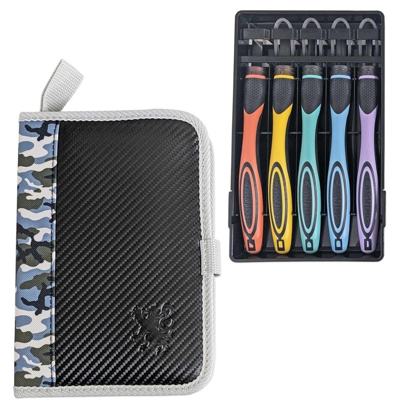 - (Set Contents) Yoshuharu 2-way Grip chisel set with safety guards, 5 pieces (flat knives, triangular knives, cutting knives, small round knives, large), name stickers, non-slip sheet, instruction manual (English language not guaranteed), blade, all-steel grip, ABS, elastomer resin, desired retail price 4,000 yen