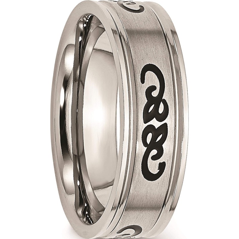 Chisel Stainless Steel Black Rubber 7mm Ridged Edge Brushed Band (Width=7)