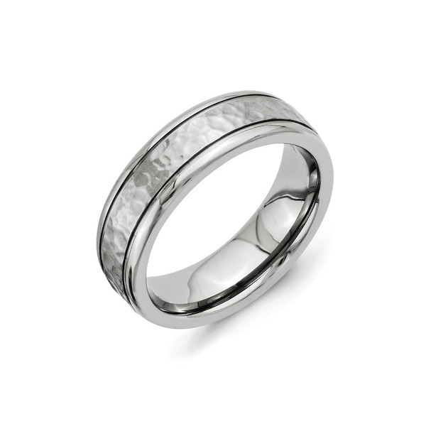 Chisel Titanium 7mm Grooved Edge Hammered and Polished Wedding Band Size 12.5