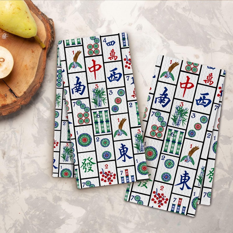 ChissNook Mahjong Gifts for Women, Mah Jong Themed Decorative Kitchen Dish Towels Set of 2, Mahjong Accessories and Gifts Ideas for Mah Jong Lovers, 16x24 Inch