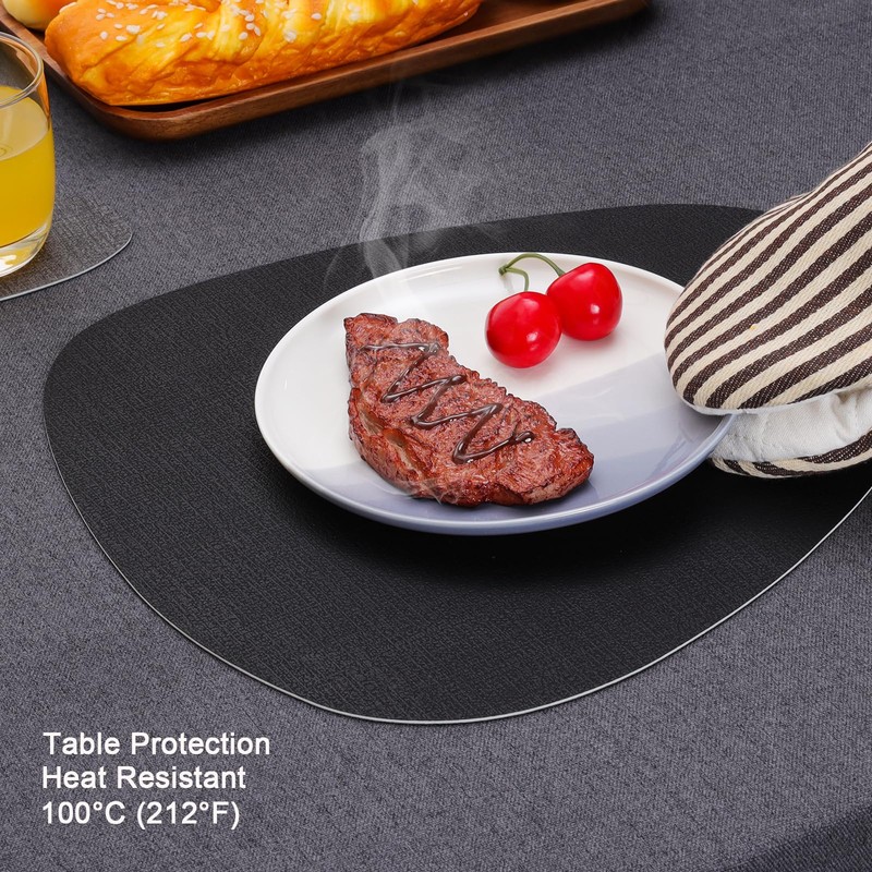 • Faux leather placemats: these washable leather look placemats are made of faux leather, the sufficient texture imitates linen, unlike woven or fabric placemats, liquid cannot pass through place mats, effectively protect your table from scratches and stains.