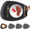 Chitomars Faux Leather Placemats and Coasters, Washable Double-Sided Non-Slip Place Mats, Round, Leather Look Placemats, Plates, Coasters (Set of 4, Grey Black)
