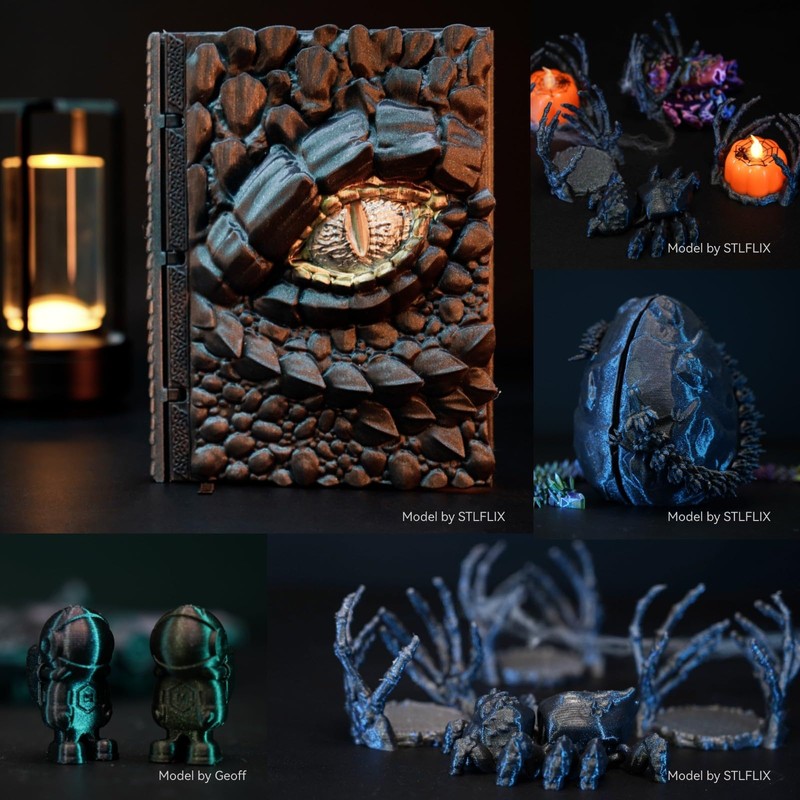 • Chameleon Filament Series: Also called Galaxy PLA/Magic PLA /Burnt Titanium, consists of new specialized color-changing powder material, changing colors with light, and sparkling from every angle