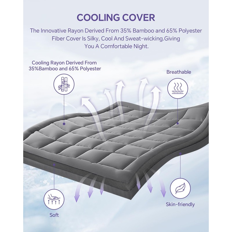 - Dual-Layer Design: Our mattress topper features a 2-inch cooling gel-infused memory foam pad and an additional 2-inch quilted pillow top cover filled with ultra-soft down alternative fiber.