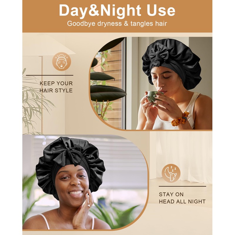 - Extra Large Size:Satin extra large bonnet measures 40 cm / 15.75 inches. The size is large enough to accommodate a variety of hair styles, including braids, curly hair, natural hair, braids, waves, long hair, and afros