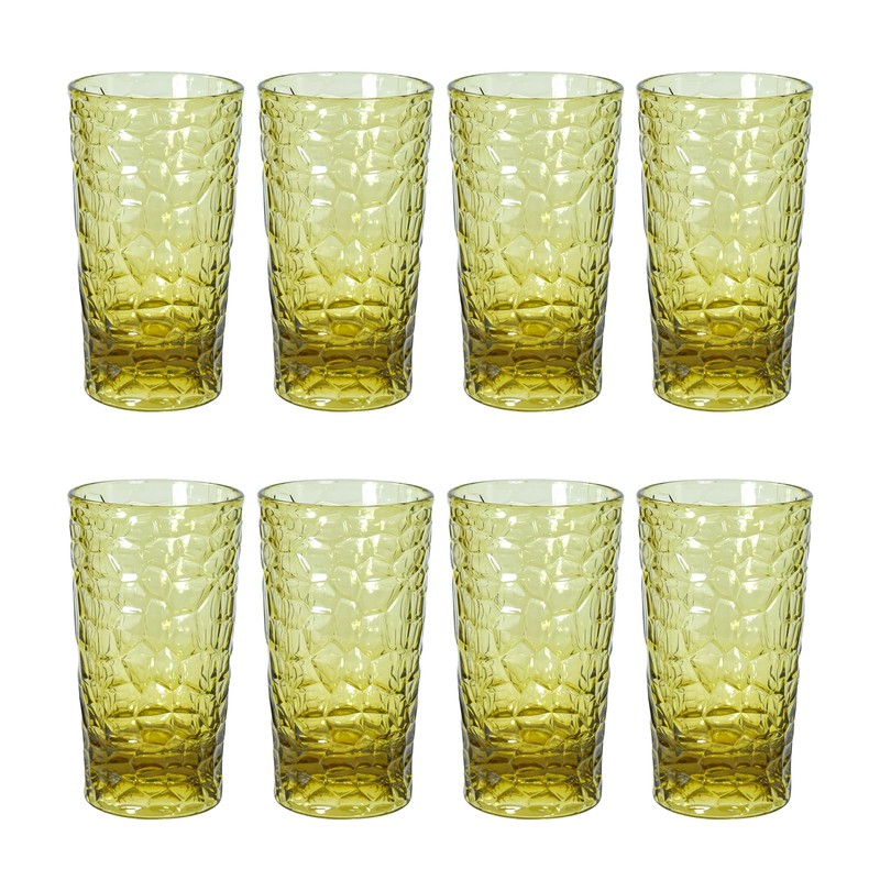 CHLJAR 14oz Acrylic Drinking Glasses, 8 Pack Plastic Tumblers BPA-Free Tumblers, Reusable Plastic Cups, Stackable, Shatter-Proof, Dishwasher-Safe, Amber