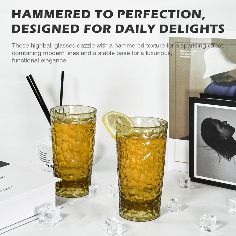 - Stylish and Modern: The glasses feature a trendy honeycomb design with a glass-textured appearance, adding a touch of sophistication and modernity to your drinkware collection. With multiple color options available, you can choose the perfect set to complement your personal style and home decor.