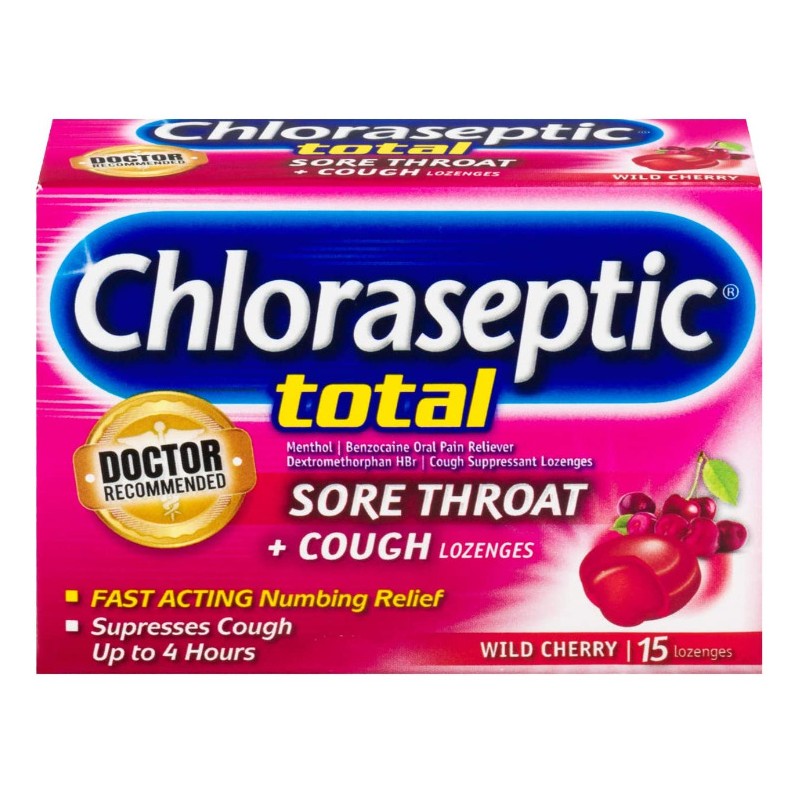 - Chloraseptic Total Sore Throat Lozenges to provide throat and mouth pain relief