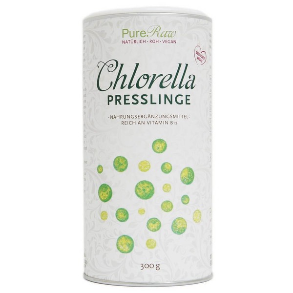 Chlorella-Tabletten aus Deutschland - Regional, Rein & Kontrolliert (Roh Vegan) Chlorella Algen Presslinge reich an Vitamin B12 Eisen Chlorophyll Spermidin - Chlorella Vulgaris Tablets | PureRaw 300g