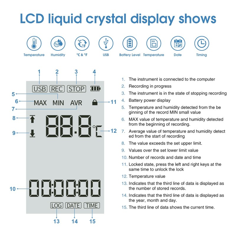 - ✅Long Battery & Massive Storage: Built-in lithium battery lasts 1+ year (5s recording interval)! Stores 99,990 records and exports via USB Type-C or Excel, streamlining compliance reporting and analysis.