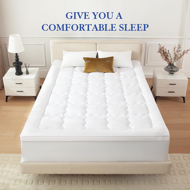 - 【Package and Service】Due to vacuum packaging, it may look thinner after opening the package, please take it in a well-ventilated place 48-72 hours to completely fluff out and allow the smell of new foam to dissipate. If there are any problems about the mattress topper after arrival, please contact us and we will promptly reply and solve your problems!