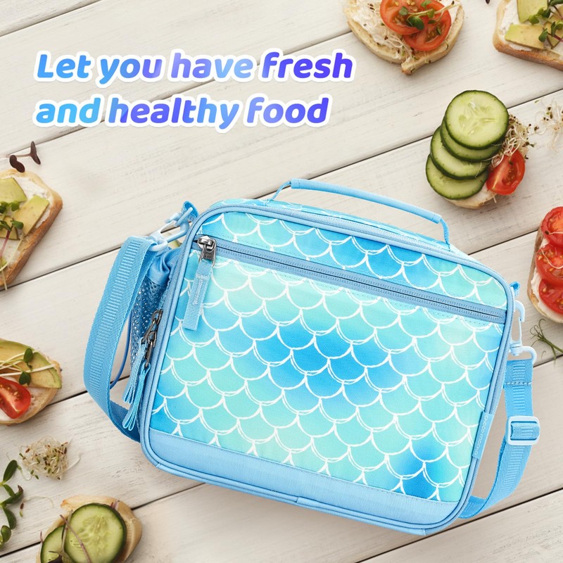 Choco Mocha Kids Lunch Box for Girls Lunch Boxes for School Lunch Bag for Girls with Shoulder Strap for Toddler Preschool Kindergarten kids Blue Mermaid