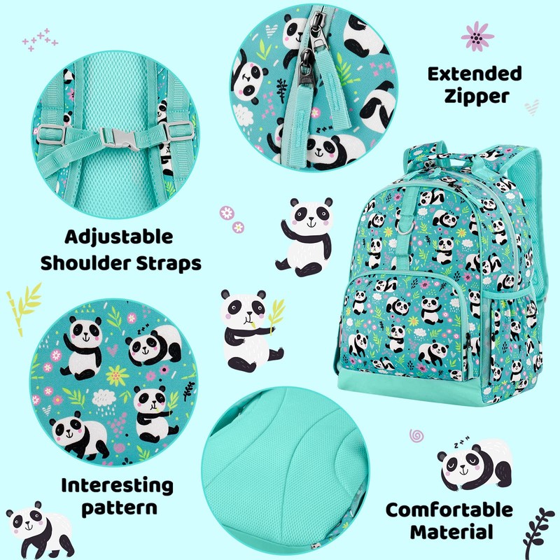 Choco Mocha Panda Backpack for Girls Preschool Backpack for Girls Pre Kindergarten Backpack for Kids 15 inch Backpack for Girls Pre K Daycare Bookbag 3-4 3-5 4-6 with Chest Strap Teal