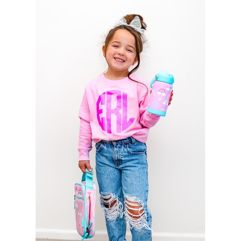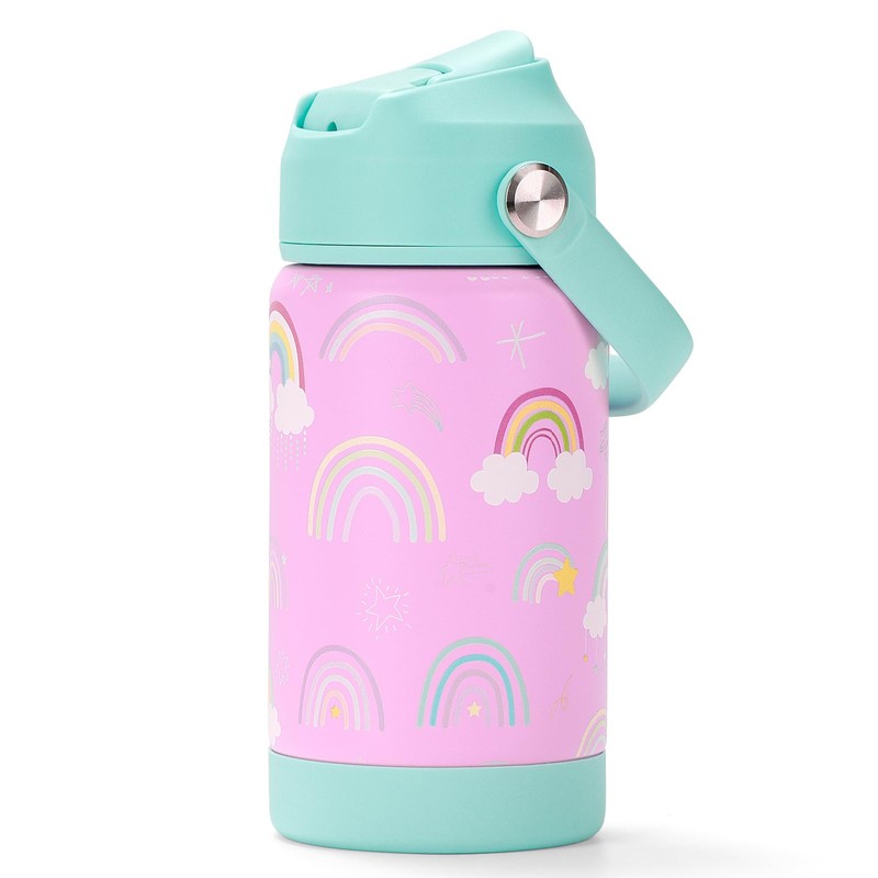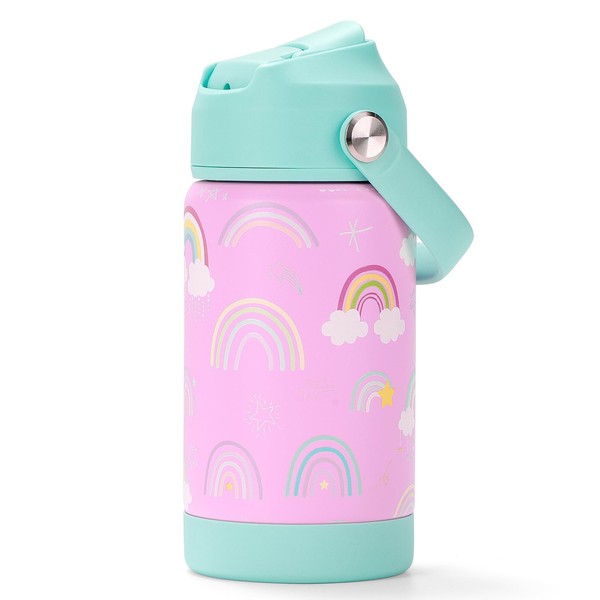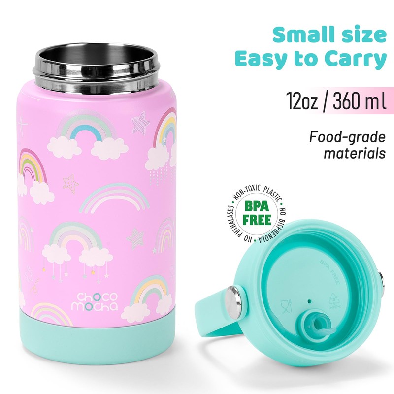 Choco Mocha Rainbow - Botella de agua aislada para niños, botella de agua para niños pequeños, acero inoxidable para preescolar, con pajita, sin BPA, a prueba de fugas, 12 onzas, rosa y verde