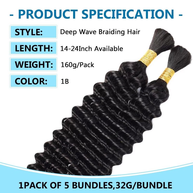 - 【Understanding Human Braiding Hair】:If you're looking for a full and voluminous braid, a 5-pack of 160g is the ideal choice for braid lovers. When you purchase the 160g pack, you'll receive a package containing 5 bundles of rubber band-stretched hair (1 pack = 160g = 5 bundles).