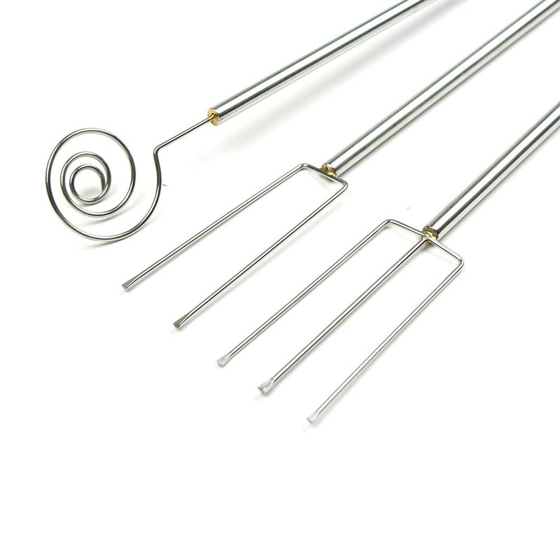 Get that professional, flawless look with your chocolates using these Stainless Dipping Tools. Each has a long handle and will let you deftly dip yourcandies without making a mess of your counter. Use to hold fruit, candy, or nutssecurely while dipping them into melted chocolate or other coatings.
