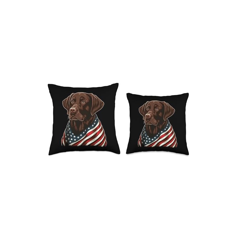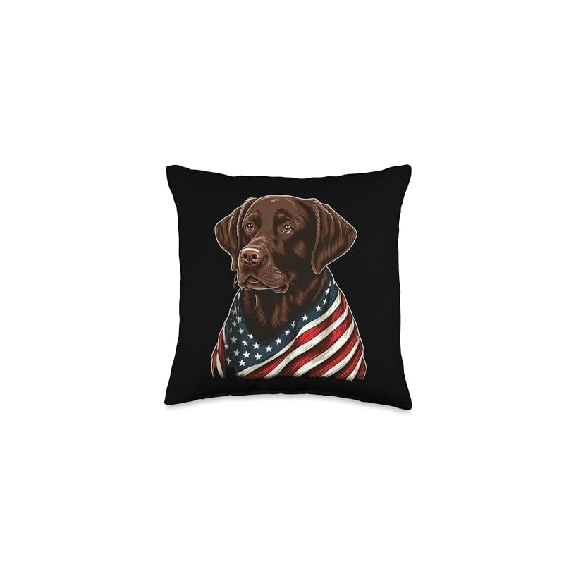 Chocolate Labrador With American Flag Patriotic USA Throw Pillow