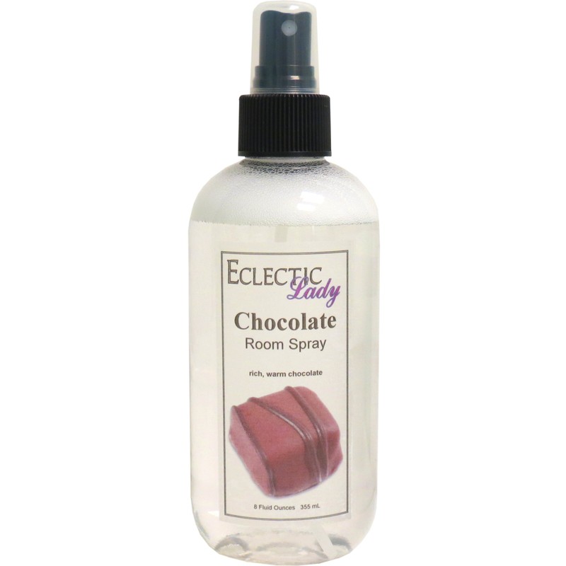 Our room sprays help to eliminate unpleasant odors in your home while adding a pleasing light fragrance. Our Room Sprays come in a non-aerosol bottle with a fine mist sprayer. Our Chocolate fragrance is a warm sweet chocolate similar to the scent of Hershey's chocolate. All of our products are made to order. To avoid leakage in transit, Eclectic Lady tapes all caps on our sprays and places each bottle into its very own reclosable bag.