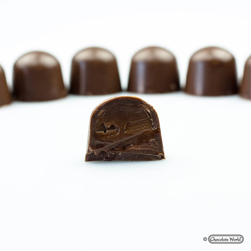 • Weight of chocolate molded in each cavity 16.8 grams (though your chocolates may not weigh the same, if you use chocolate and/or filling different from the kind used by Chocolate World with this mold