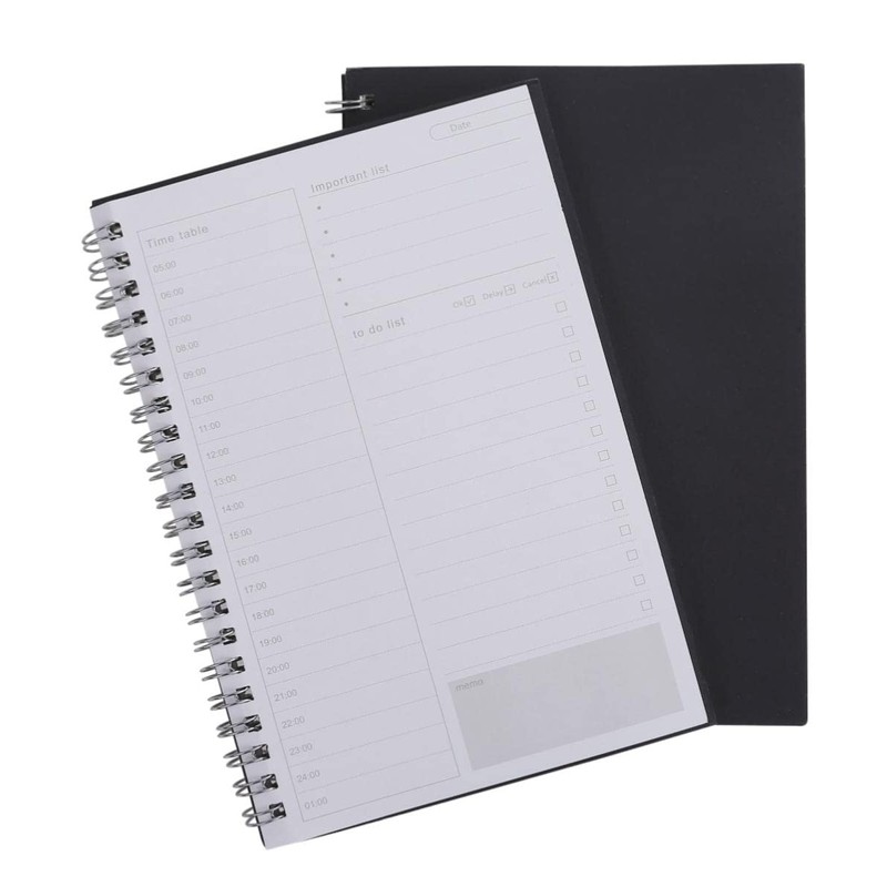 Chocople ToDo List Schedule Day Time Keeping Notebook, Dayly B6 Size, Set of 2 (Covers, Black Cardboard)