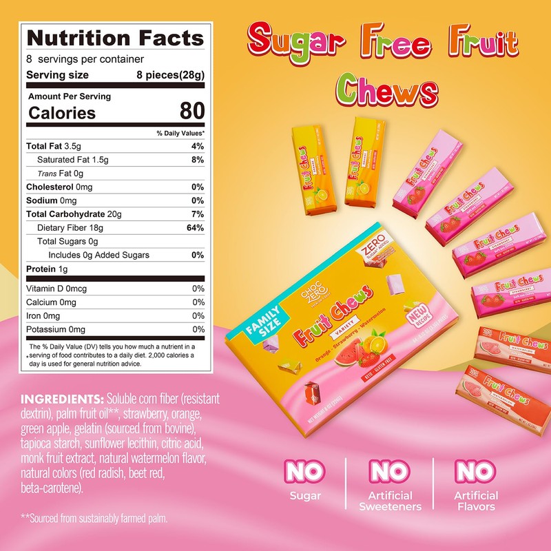 - Each sugar free fruit chew piece is individually wrapped for your healthy lifestyle: take them anywhere