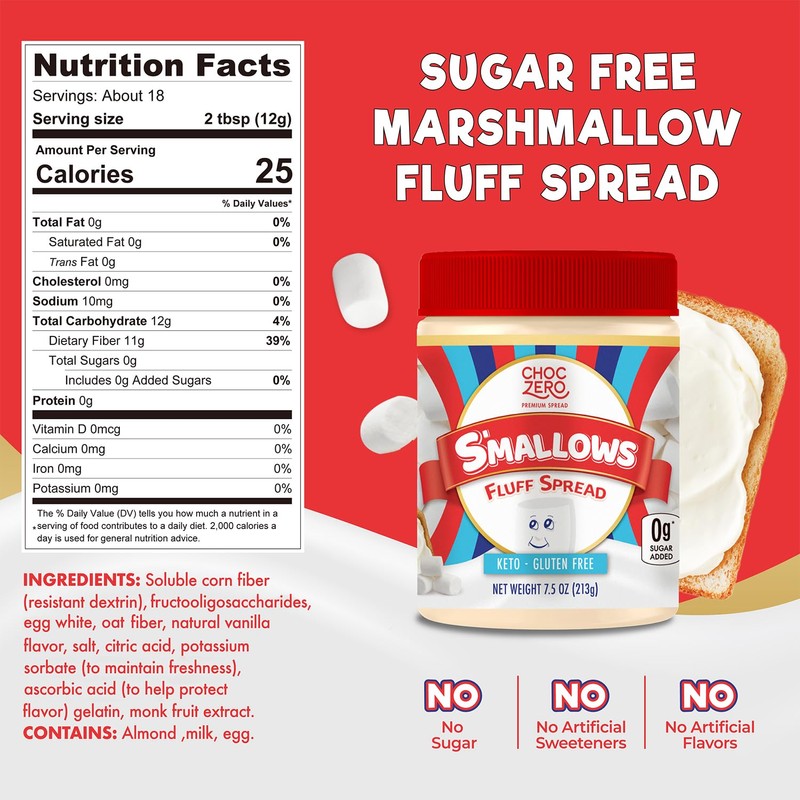 ChocZero Marshmallow Spread, Gluten Free, Sugar Free Dessert Creme Dip, Fat Free, High in Fiber, 7.5 Ounce (Pack of 1)