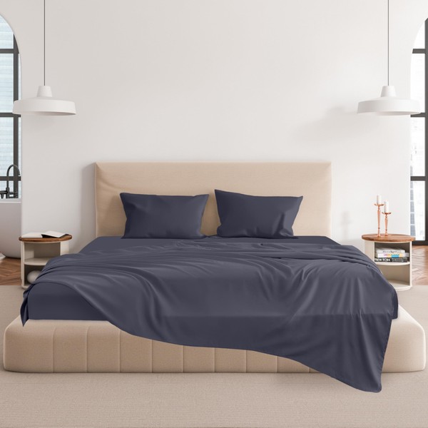 CHOEGOBEST Easy Care Luxury Microfiber Extra Soft and Cooling Bed Sheet Set with Deep Pockets (Black Iris, Queen Set of 4)