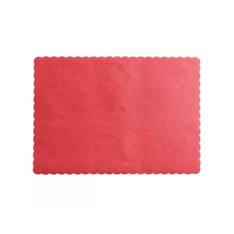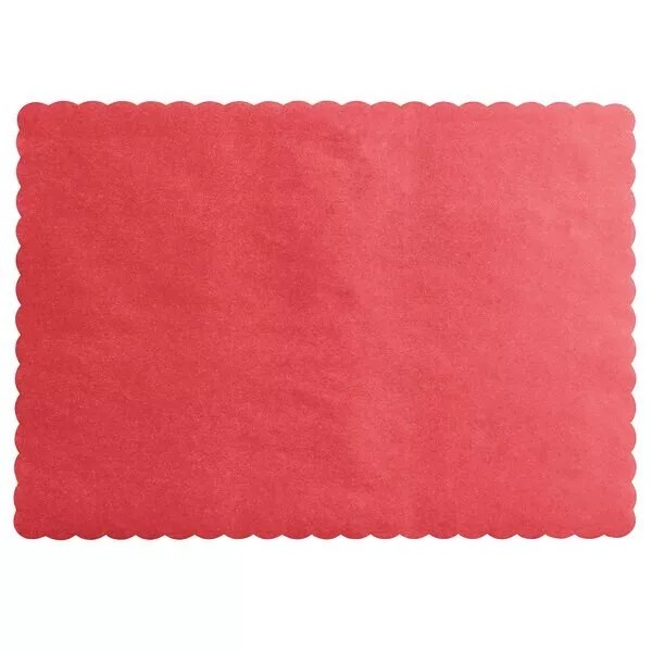Choice 50 Choice 10" x 14" Red Colored Paper Placemat with Scalloped Edge