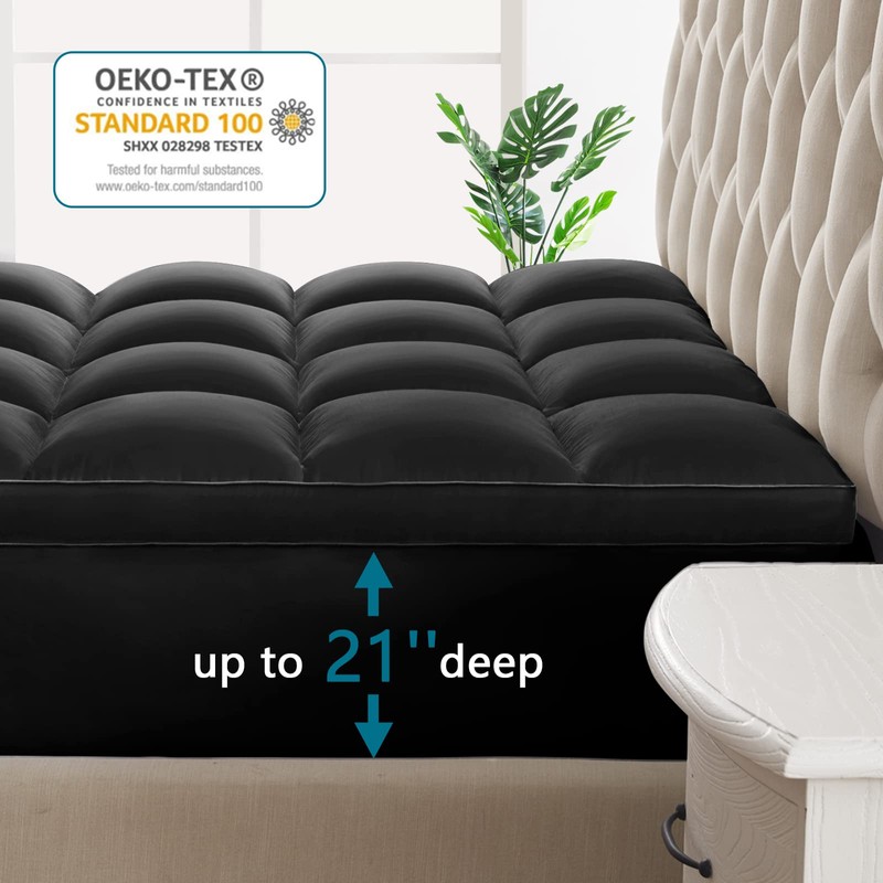 • 🎁1.【Upgraded Quality & Certified STANDARD 100 by OEKO-TEX】: Stuffed with advanced 5D snow down alternative fill that has a ultra soft and bouncy feel. Our mattress toppers have twice the premium filling of the traditional mattress pads, which improve the texture of the bed and the quality of sleep effectively.