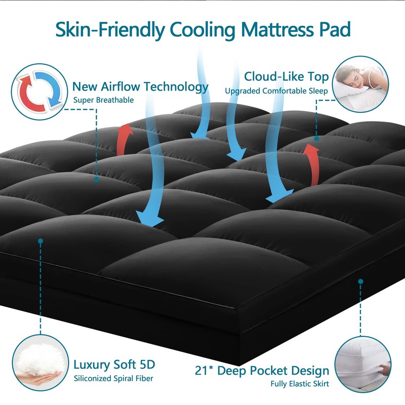 • 🎁3.【Cool Breathable & Skin-Friendly】: With the new HNN Cooling Technology, this bed topper provides moisture wicking function and promotes greater airflow to prevent heat build-up, which keeps your skin cozy and cooling, maximizes comfort and temperature regulation for healthier sleep. Make you wake up refreshed and recovered.
