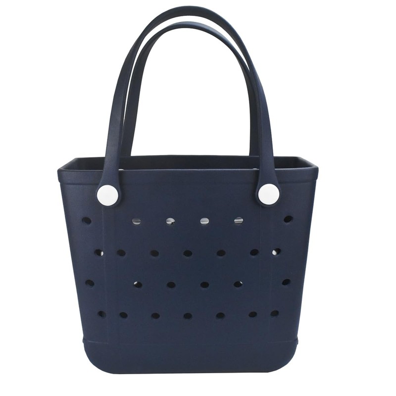 Chokoter Beach Bag, Waterproof Beach Tote, Rubber Medium Tote Bag, Washable and Durable Open Handbag for Boat Pool Sports (Dark Blue2)