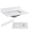 - 【Functionality Design】 Engineered stone vanity top with assembled rectangular sink, 4" high backsplash. Single faucet hole for a standard centerset faucet (faucet not included).