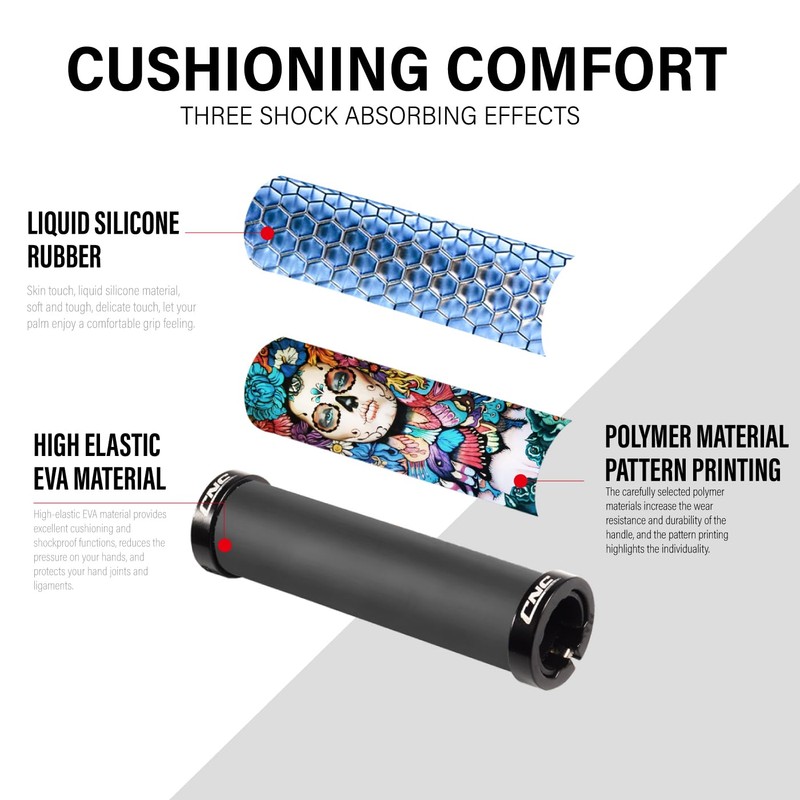 Innovative Design: Elastic main rubber tube + EVA + polymeric nano material + liquid silicone, double lock-on design, convenient and safe, can be customized according to your riding preferences.