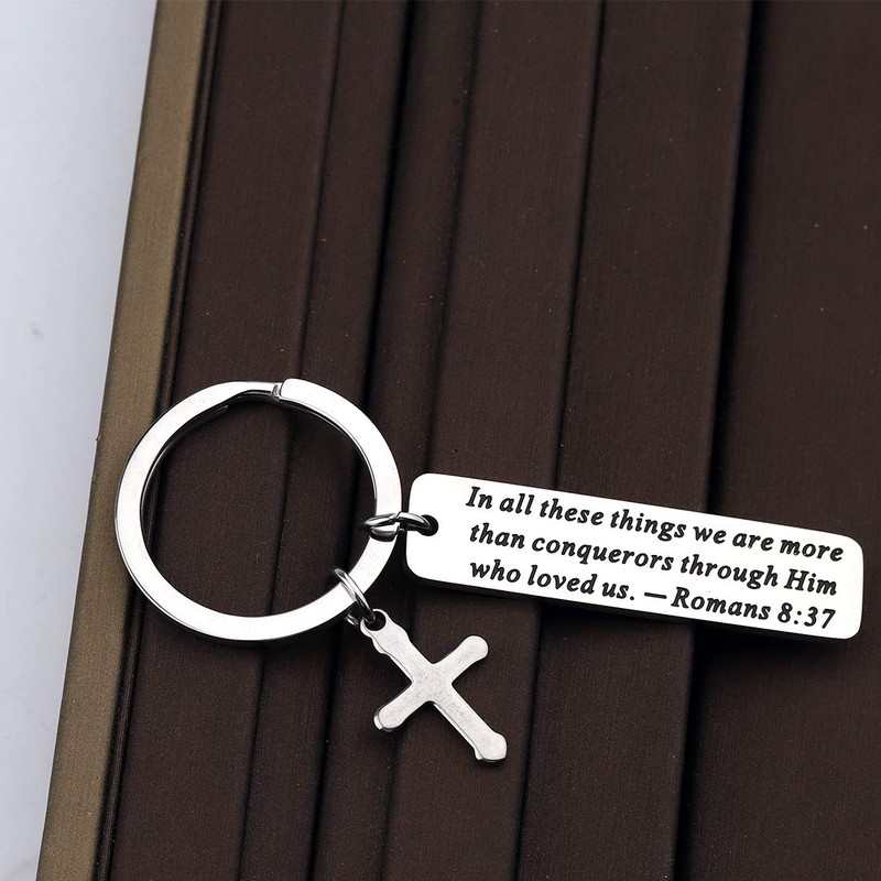 CHOORO Christian Gift Bible Verse In All These Things We Are More Than Conquerors in Him Who Loved Us Romans 8:37 Keychain (Romans 8:37 keychain)