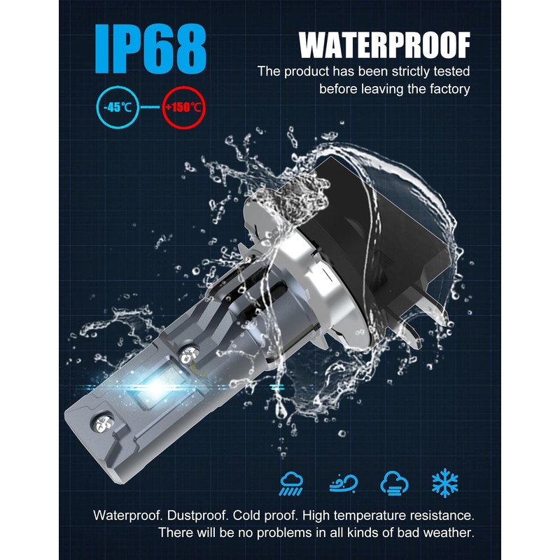 - Protective Design. IP68 protection level. Our H11B H7 H11 LED Bulb Combo is Waterproof. Dustproof. Cold proof. High temperature resistance. There will be no problems in all kinds of bad weather.