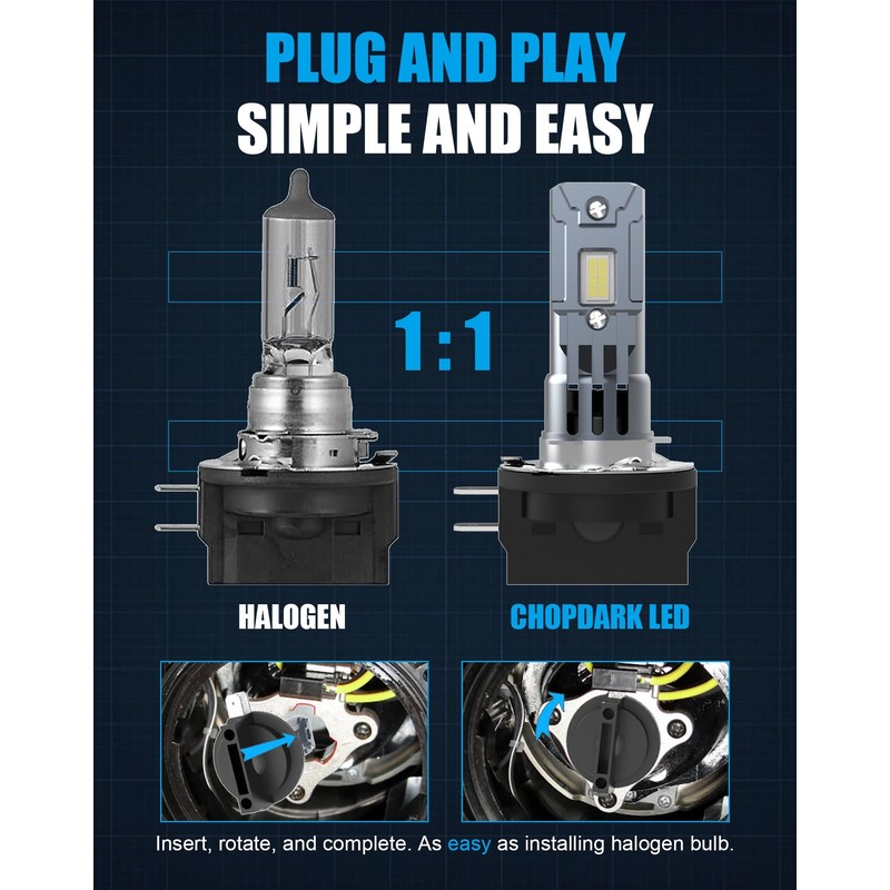 - Simple Installation. Within 10 min. This H11B H7 H11 LED is 1:1 Design. All in One. True Plug and Play. Truly non-destructive installation. Save you time and installation costs.
