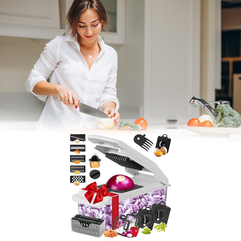 • Multi-Functional Kitchen Tool: Streamline your cooking process using this 18-in-1 tool that is excellent for chopping vegetables, slicing onions, and dicing potatoes, offering multi-functional utility for all culinary tasks