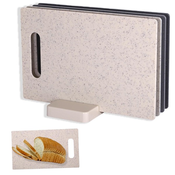 Chopping Board, Plastic, Multicoloured Kitchen Cutting Board, Set of 4, Rock Appearance Chopping Board, 28 x 18 cm, Suitable for Bread, Vegetables and Meat, Chopping Board Set with Stand