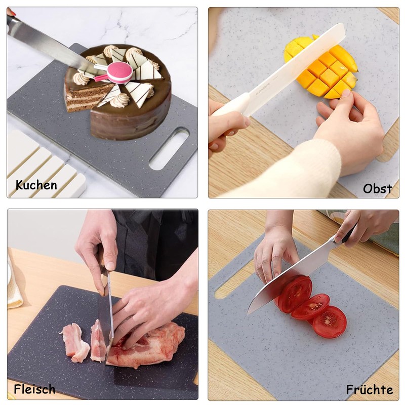 - The non-slip chopping board set made of high-quality, odourless plastic is durable and durable and is suitable for cutting fruit, vegetables and meat.